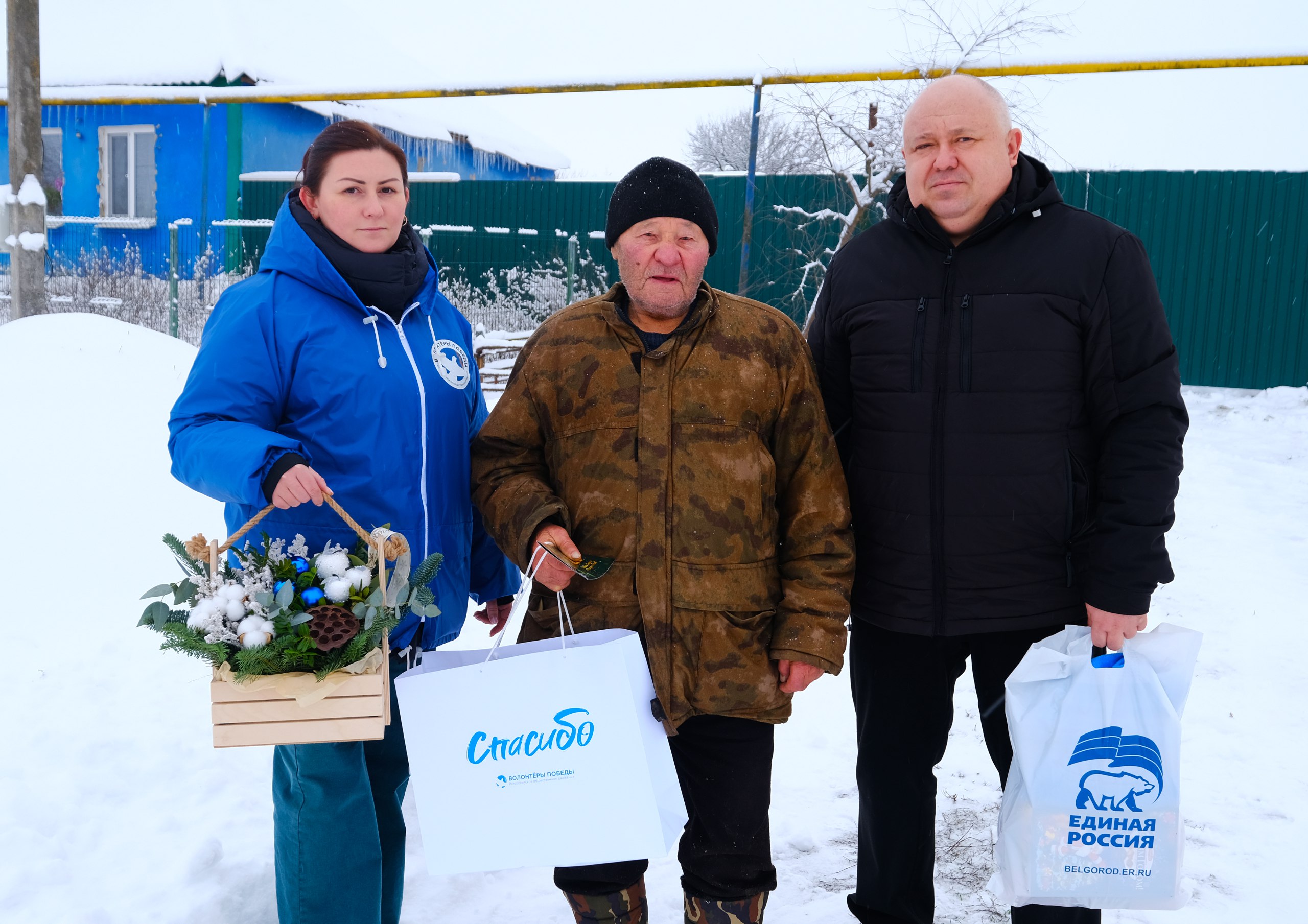 В преддверии Нового года волонтёры Победы Корочанского округа вместе с главами администраций территорий навестили участников и ветеранов Великой Отечественной войны и поздравили их с наступающими праздниками.