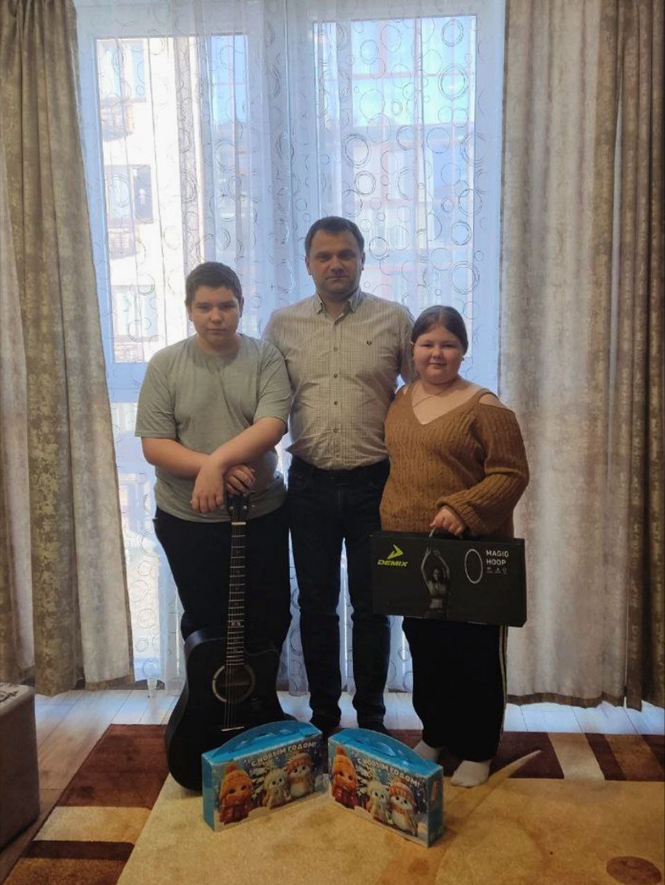 Данилу 14 лет, он учится в 8 классе и любит играть в компьютерные игры. Игрой на гитаре мальчик вдохновился благодаря видео в интернете, теперь с новым подарком он сможет обучиться и играть для своих родных. Сестре Валерии 11 лет, учится в 6 классе. Она творческая девочка - рисует, делает брелоки ручной работы, поэтому, чтобы не уставать за кропотливой работой, будет заниматься спортом с помощью нового обруча.