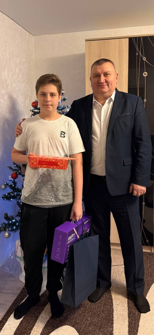 Николай Сафронов вручил Артему современный микрофон для записи звука на компьютере, сладкий подарок и сердечно поздравил мальчика с наступающими праздниками, пожелал новых творческих открытий, вдохновения и радости от занятий любимым делом.
