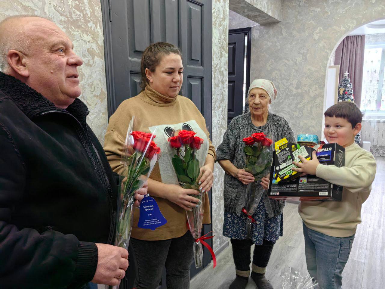 Владимир Кузьмич Евдокимовнавестил Дашу и Мишу из Губкина, которые загадали на Новый год энциклопедию и конструктор. Сергей Витальевич Шумскийпередал Арсению из Ровеньского округа набор для увлекательных химических опытов. В гости к многодетной семье из Грайворонского округа, где растут Стёпа, Вероника и Света, приехал Виктор Иванович Трофименко. Девочки получили беспроводные наушники, а их брат — желанную автостраду.