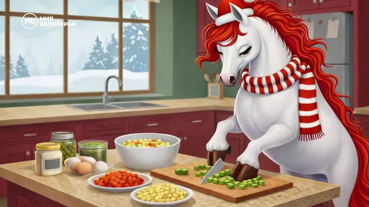 А наша Белогорочка тоже в строю: оливье уже почти готов, скоро возьмётся за остальные салатики. На кулинарные подвиги она отвела целый день – серьёзно подошла к делу!