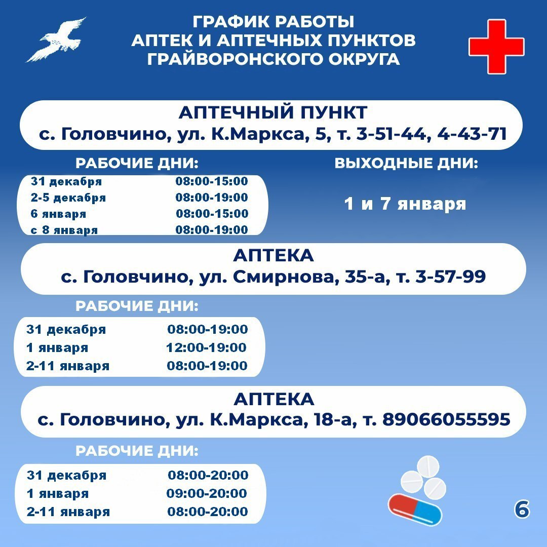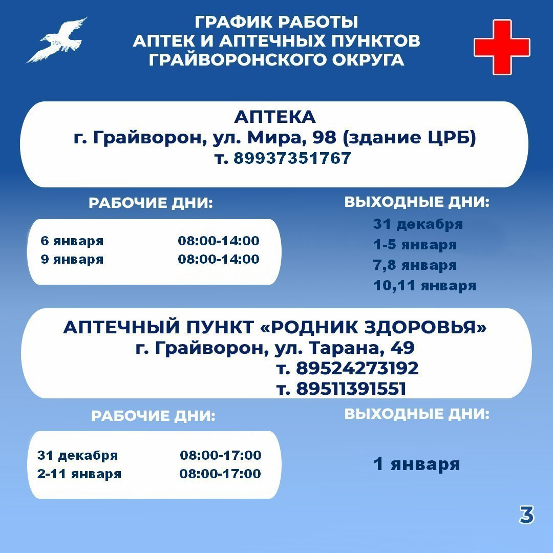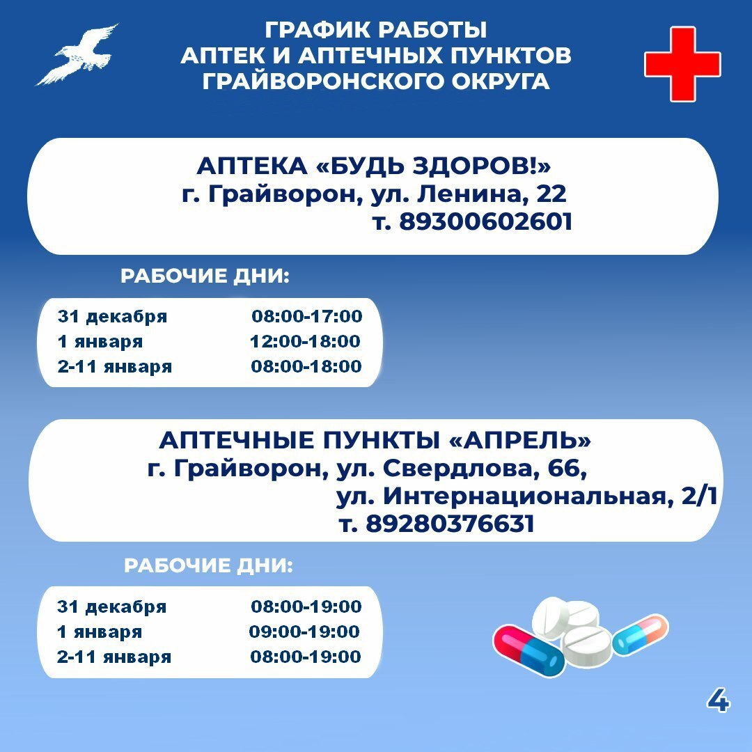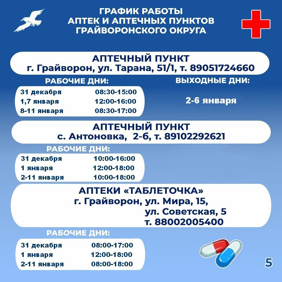 Как работают аптеки и аптечные пункты Грайворонского округа в новогодние праздники?