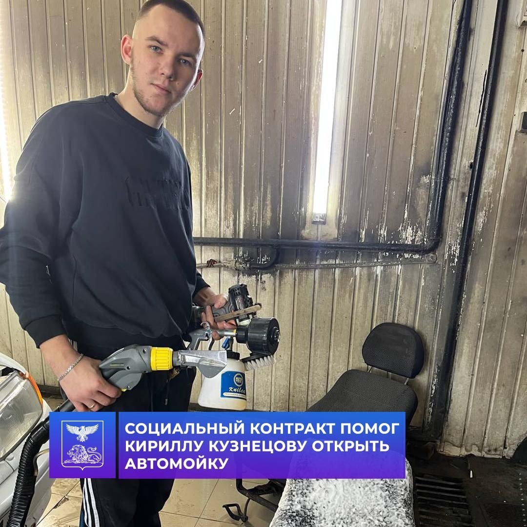 Кирилл живёт в Ракитном вместе с семьёй. Чтобы улучшить жизнь своих близких, он решил открыть собственную автомойку, ведь у него уже был трёхлетний опыт работы в этой сфере. Для этого ракитянец принял участие в программе «Содействие». После заключения социального контракта по направлению «Индивидуальная предпринимательская деятельность» молодой человек получил 350 тысяч рублей. На эти деньги он приобрёл профессиональное оборудование: моющий пылесос, пароочиститель, турбосушка, чистящий пистолет, компрессор, пенораспылитель и многое другое.