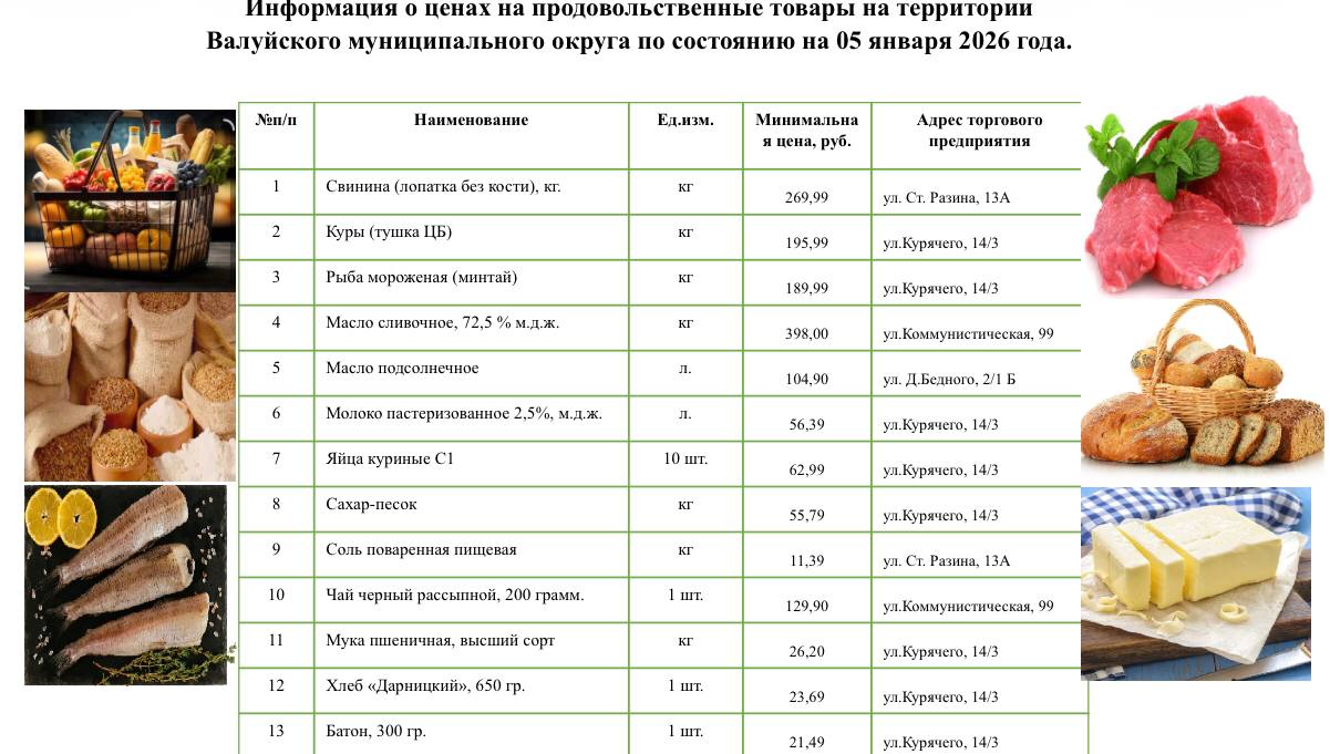 Публикую информацию о том, где дешевле всего можно купить необходимые продукты в городе Валуйки. Цены представлены на 5 января 2026 года.