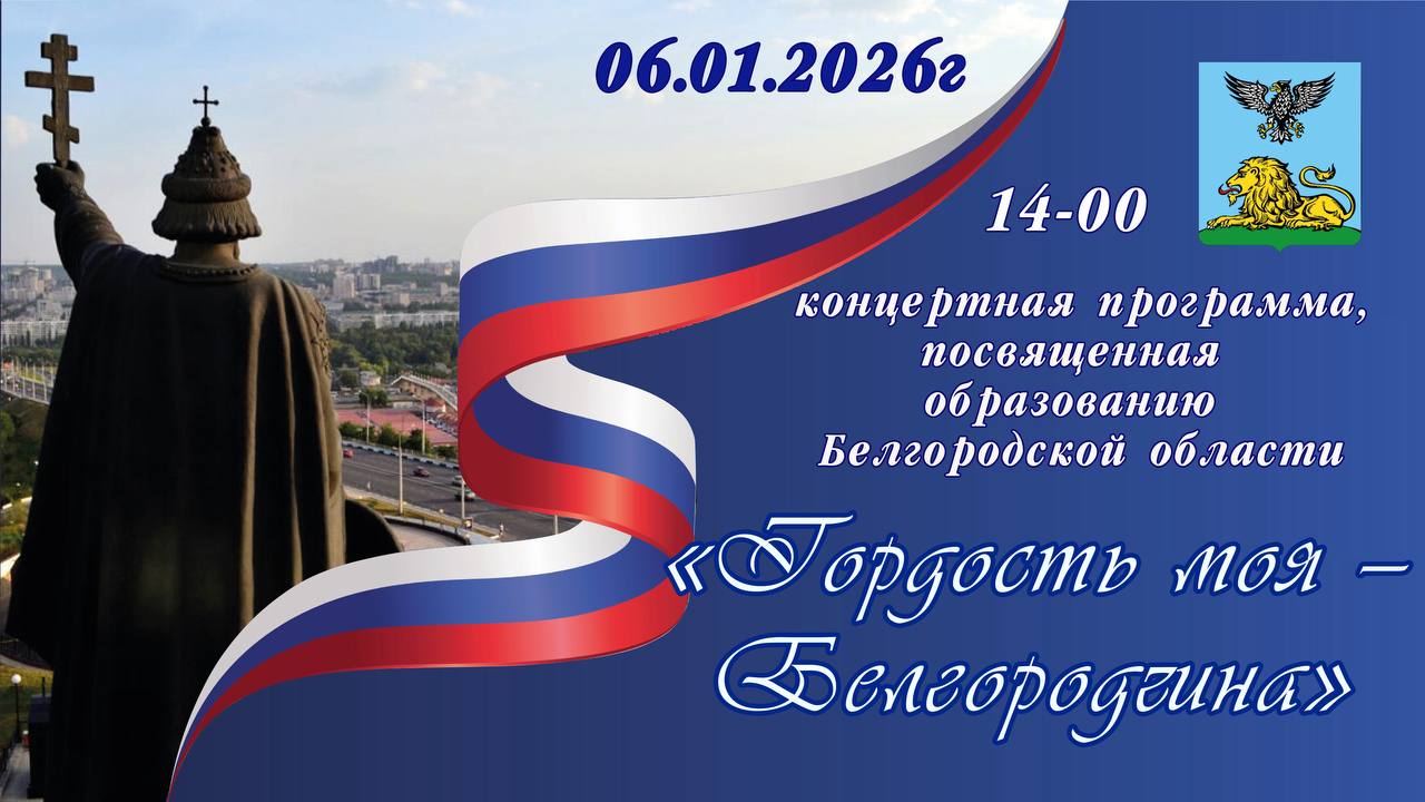 6 января — значимая дата для каждого из нас: в этот день отмечается День образования Белгородской области! В честь праздника завтра в культурно-спортивном центре города Короча состоится концертная программа «Гордость моя — Белгородчина».