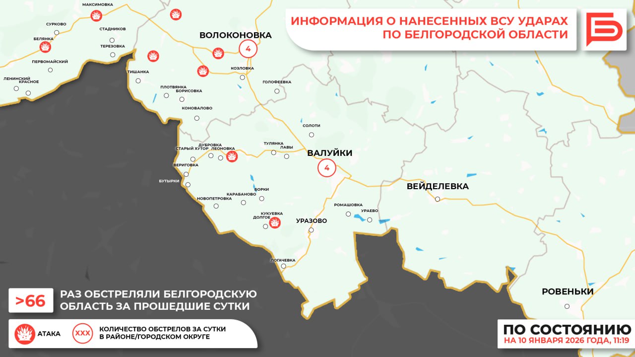 За прошедшие сутки ВСУ обстреляли Белгородскую область не менее 66 раз