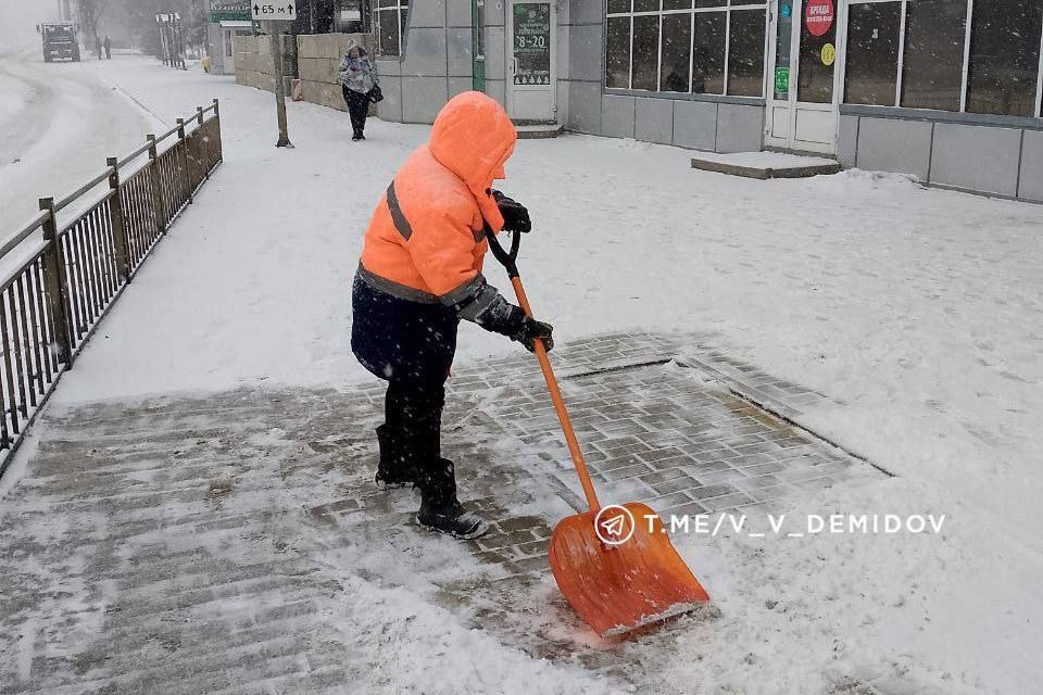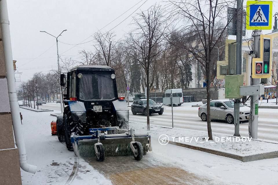 Коммунальщики трудятся в областной столице в усиленном режиме. Снегопад продолжается.