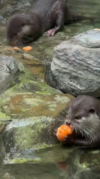 Выдры из белгородского зоопарка Карамелька и Сырок – большие ценители цитрусовых!