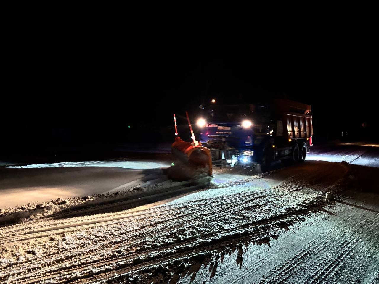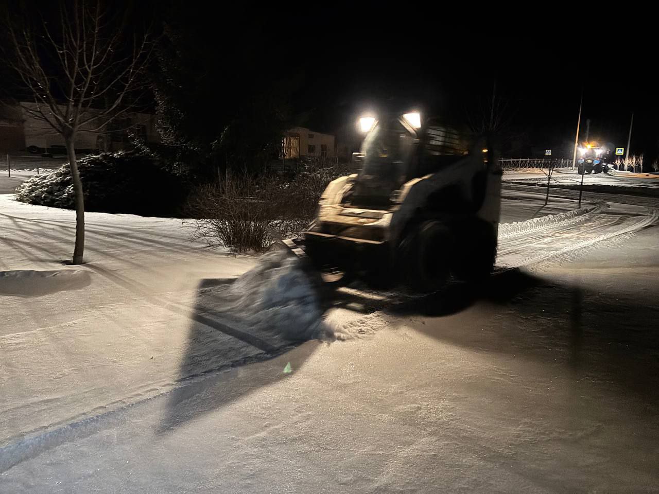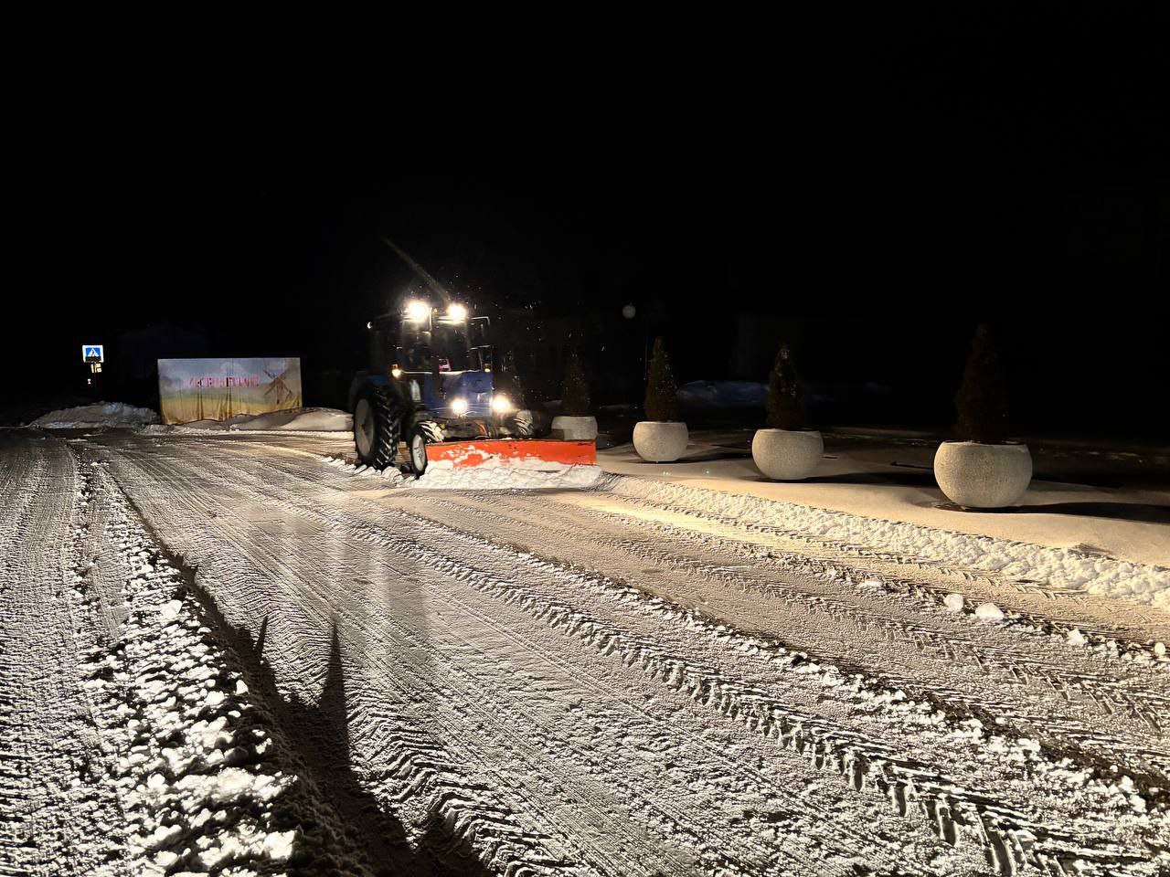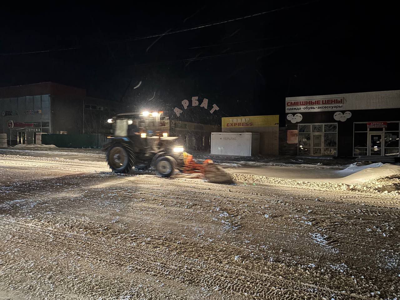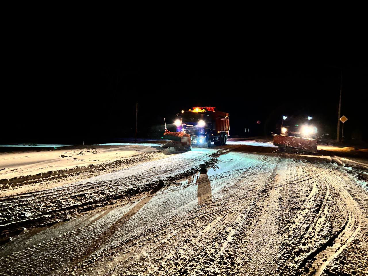 Спецтехника очищает проезжую часть, подъезды к социально значимым объектам и опасным участкам. Производится уборка тротуаров, остановок общественного транспорта, пешеходных переходов и территорий общественных пространств.