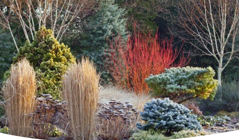 Важно выбирать растения, которые выглядят привлекательно даже в стужу. Например: