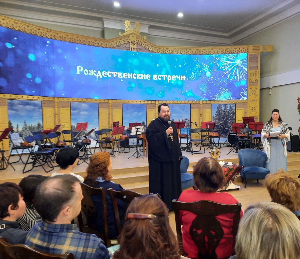 С приветствием и добрыми пожеланиями выступил благочинный Грайворонского округа церквей, руководитель оркестра русских народных инструментов «Струны Благовестия», протоиерей Андрей Колесников. Он рассказал о глубоких историко-культурных аспектах установления даты Рождества, рождении Христа, значении праздника и легендах, окружающих Вифлеемскую звезду. Особое внимание уделил подаркам волхвов: золоту, ладану и смирне.
