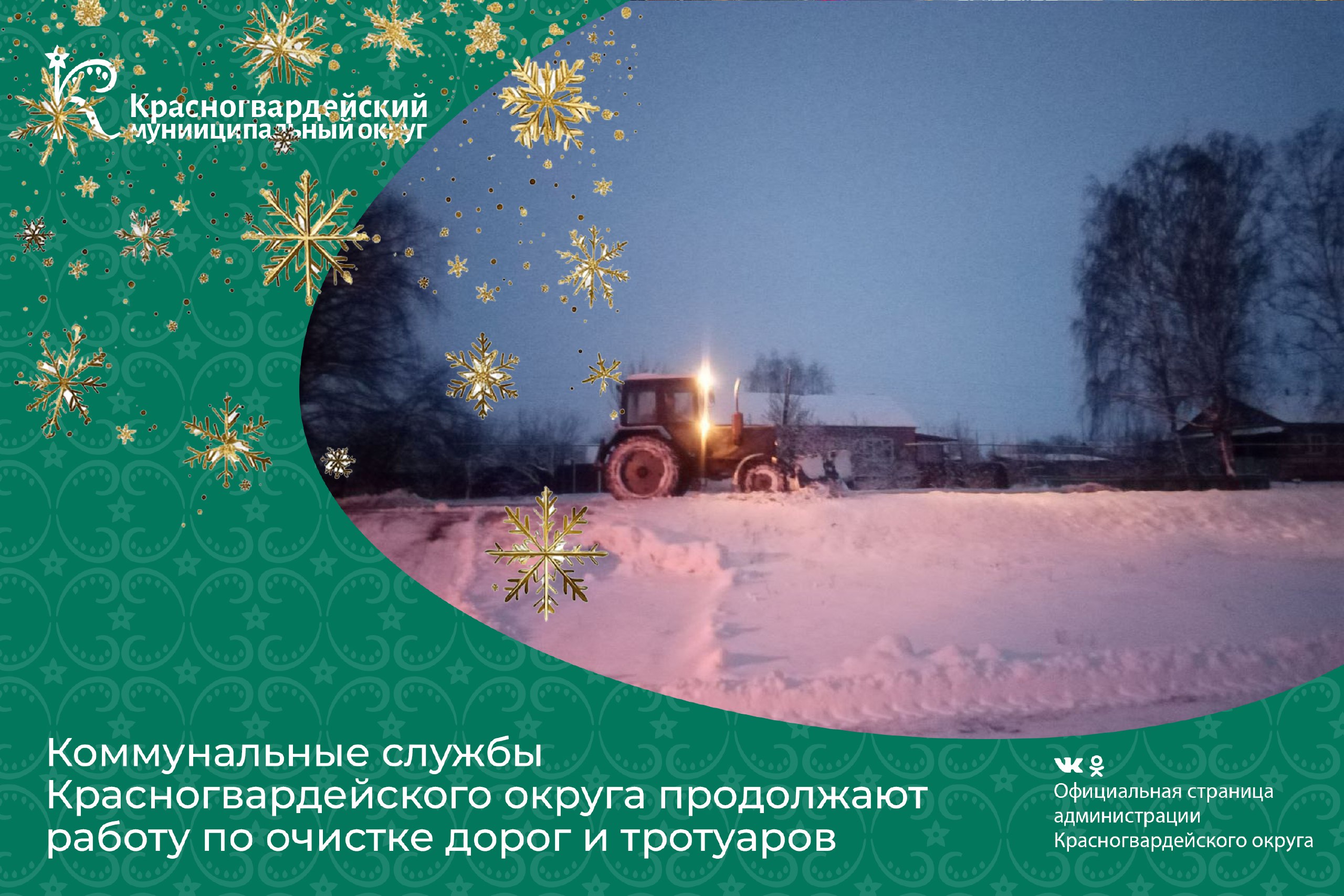 Коммунальные службы Красногвардейского округа продолжают работу по очистке дорог и тротуаров