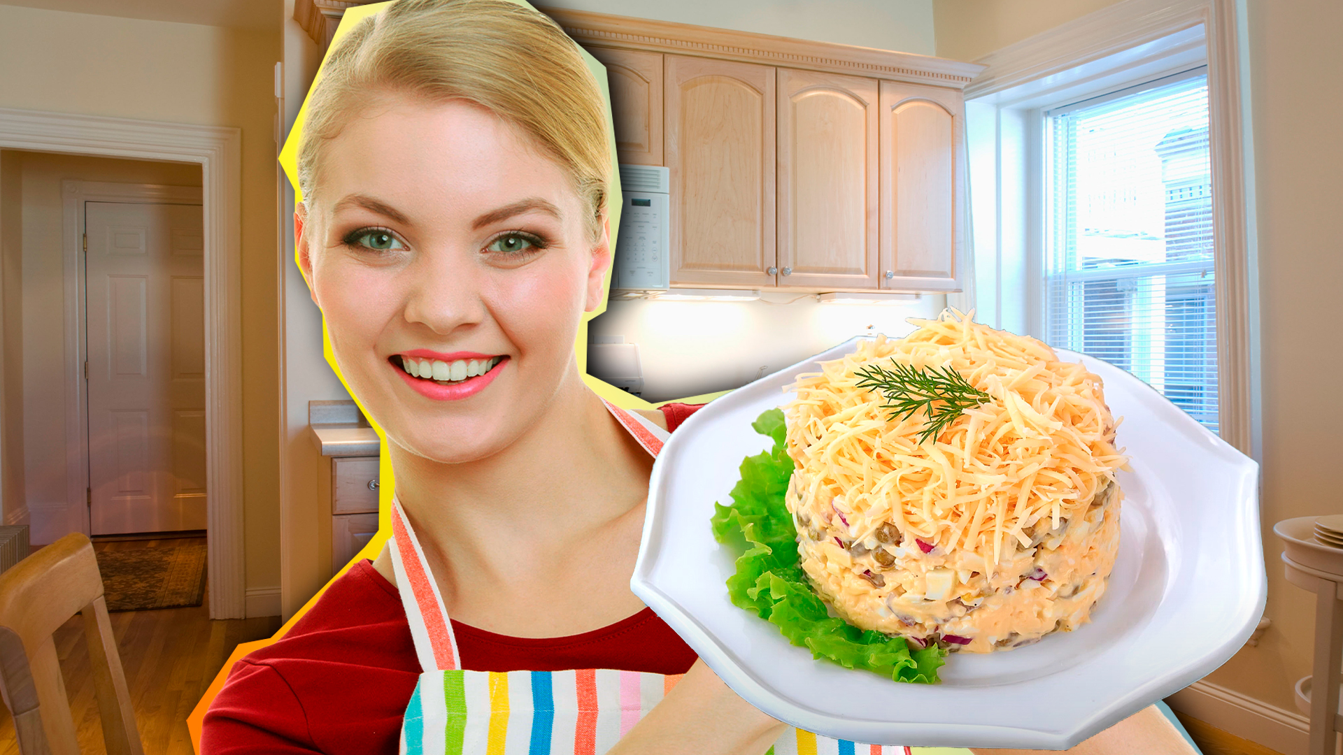С помощью большой насадки натрите сыр. Затем измельчите вареные яйца и лук. Промойте горошек через сито. И теперь просто смешайте все ингредиенты с майонезом. При украшении салата дайте волю своей фантазии, передает канал «Рецепты вкусной жизни».