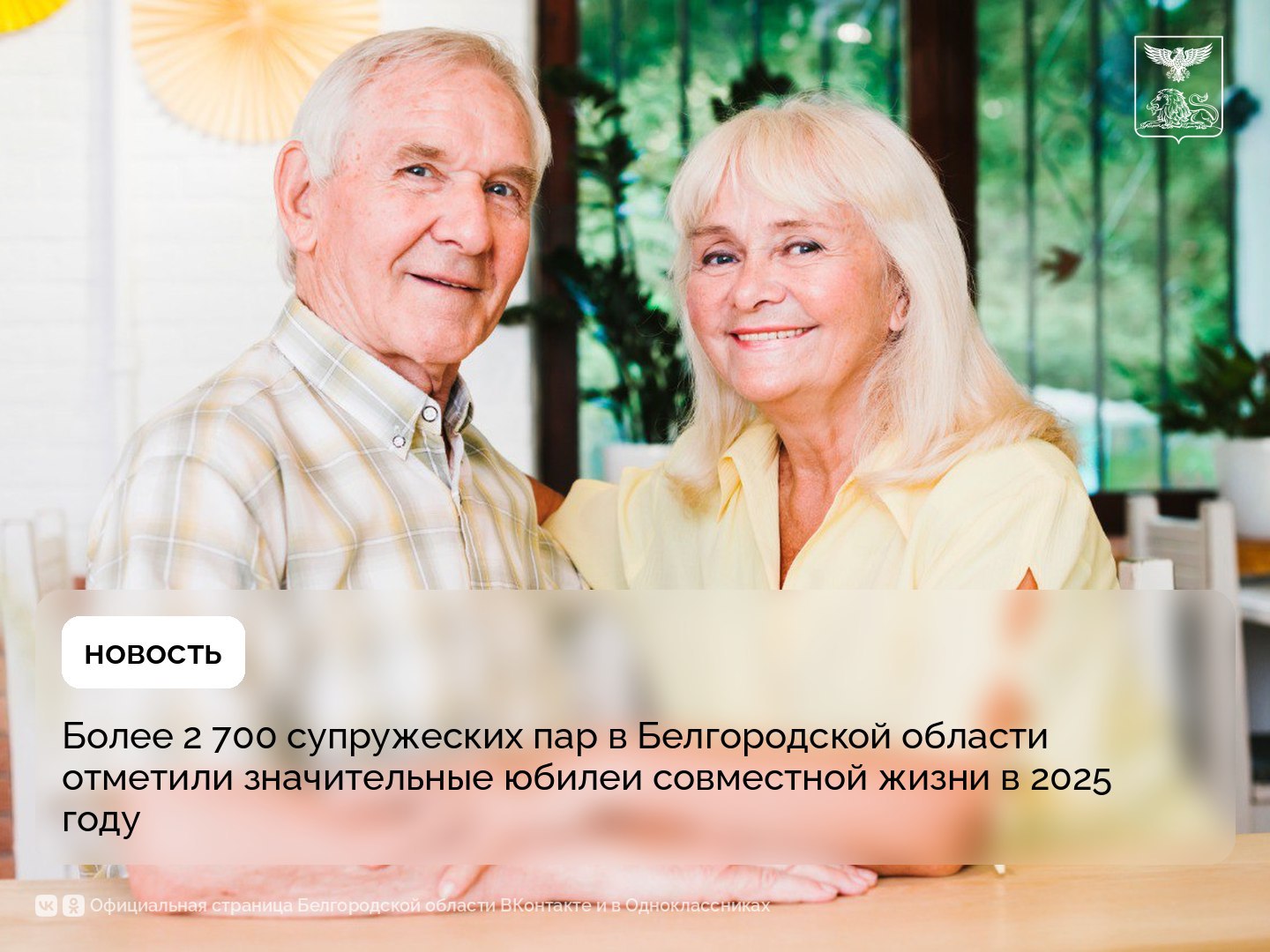 В 2025 году 2 752 пары в Белгородской области получили денежную выплату к юбилеям совместной жизни. В связи с 50-летием совместной жизни – 2500 семей, в связи с 60-летием совместной жизни – 246 семей, 70 лет совместной жизни отметили 6 пар.