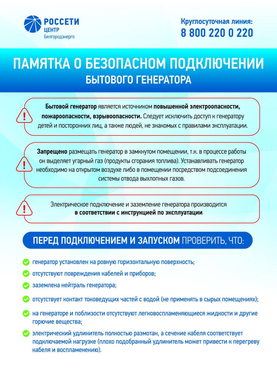 Белгородские энергетики напоминают: для корректного учёта электроэнергии бытовой генератор следует подключать после прибора учёта