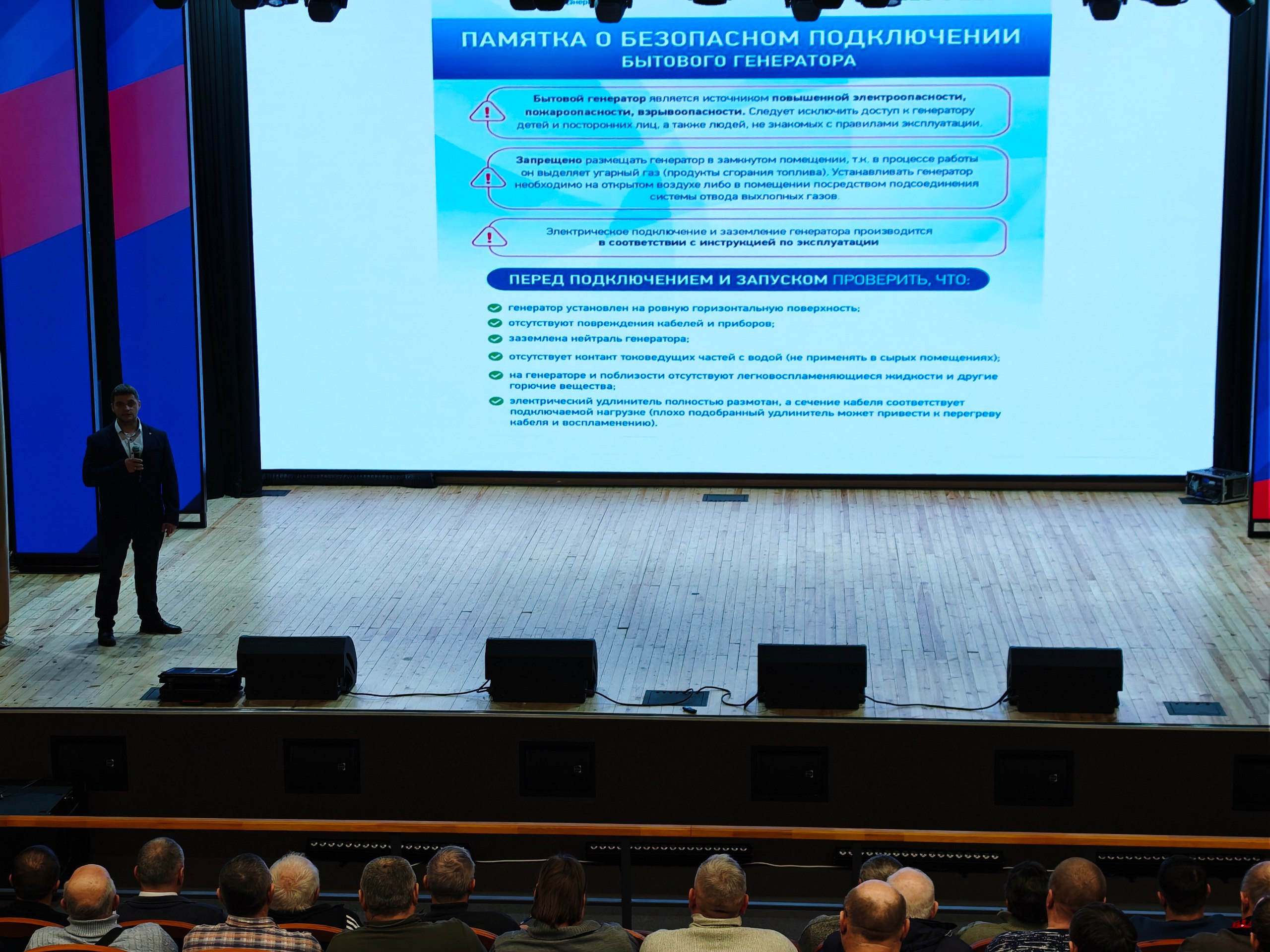 В процессе проведения мероприятий сотрудники компании «Россети» подробно ознакомили участников с порядком подключения и запуска генератора, правилами эксплуатации оборудования и требованиями безопасности при работе с устройствами.
