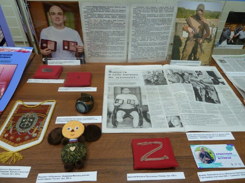 личные вещи героев: экспонаты, принадлежащие как погибшим, так и живым участникам боевых действий в составе ВС РФ и ЧВК «Вагнер»;