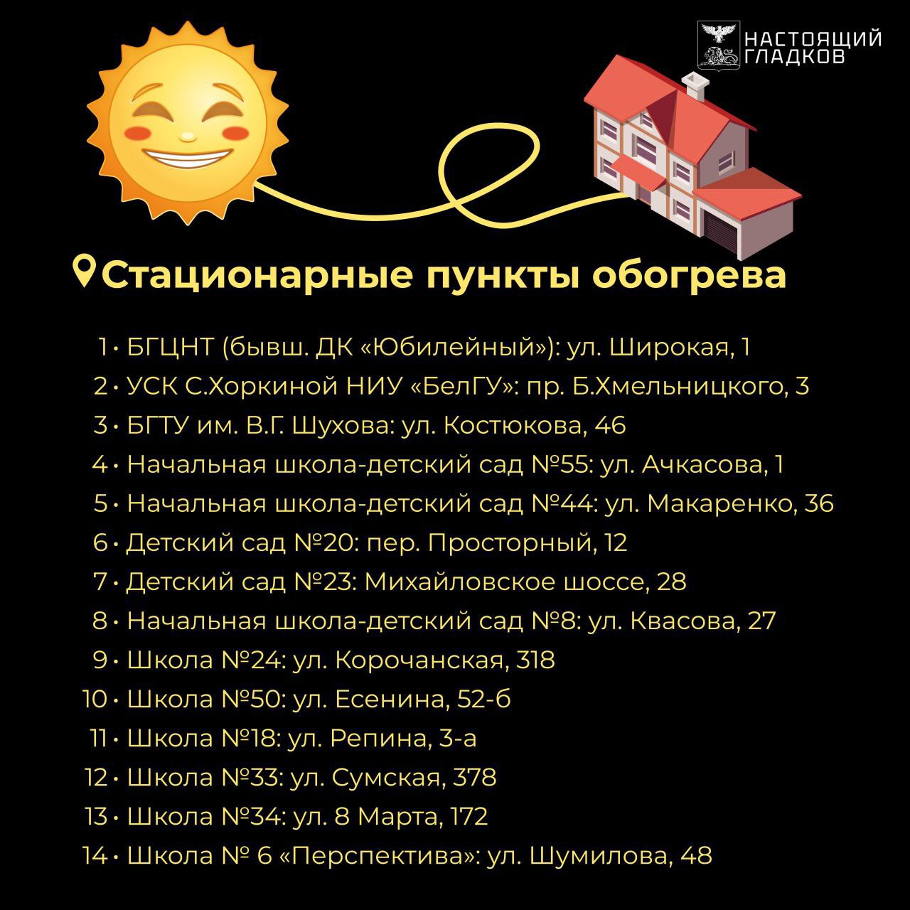 Вячеслав Гладков поделился адресами пунктов обогрева