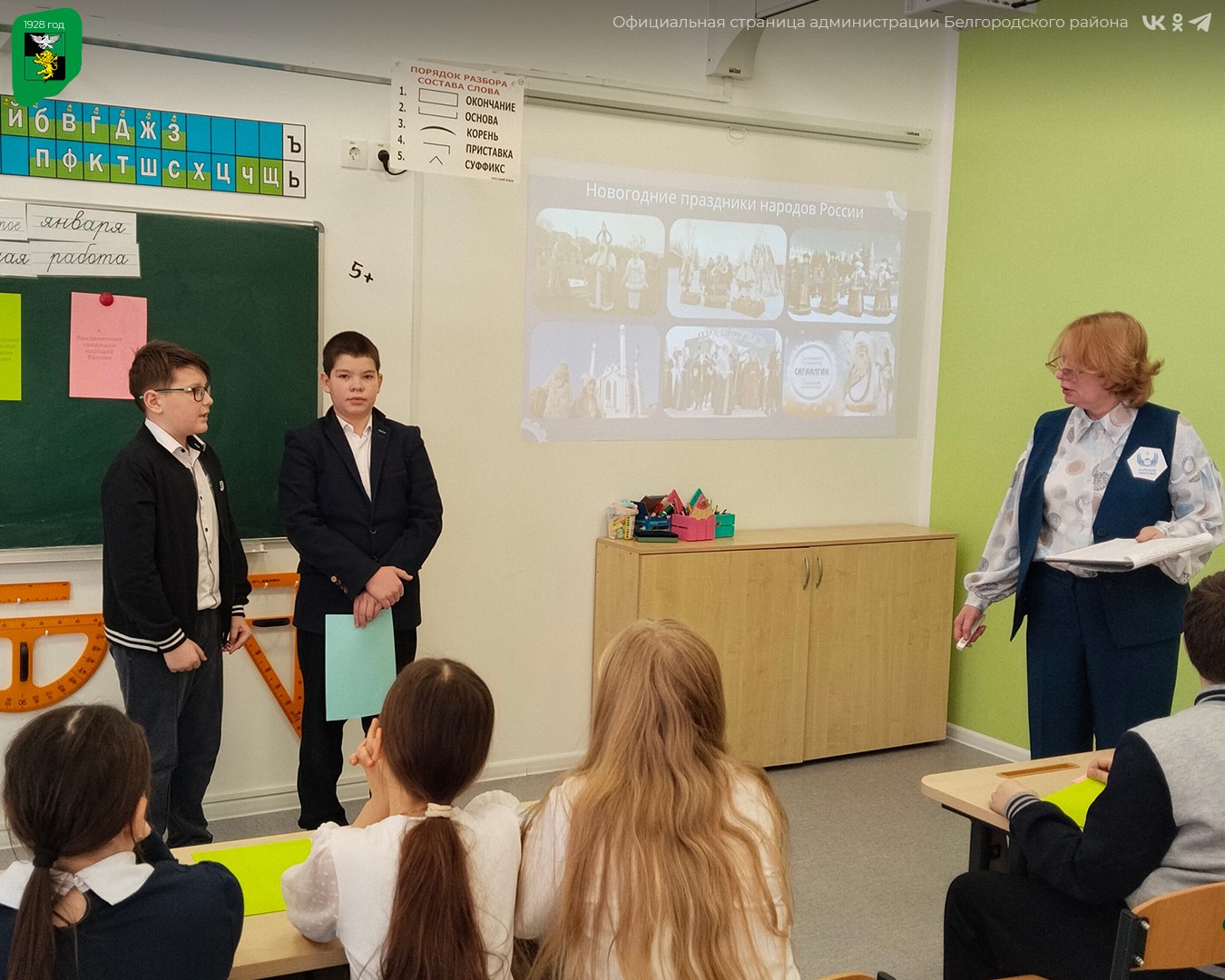 Мероприятие «Мозаика зимних чудес: новогодние традиции народов России» состоялось под руководством классного руководителя Натальи Протасовой. В ходе занятия школьники познакомились с культурным многообразием страны, обсудили историю новогодних украшений, семейные традиции и особенности празднования Нового года у разных народов России. Ребята узнали о обычаях, песнях, играх и праздничных угощениях татар, чувашей, якутов, народов Кавказа и других регионов.