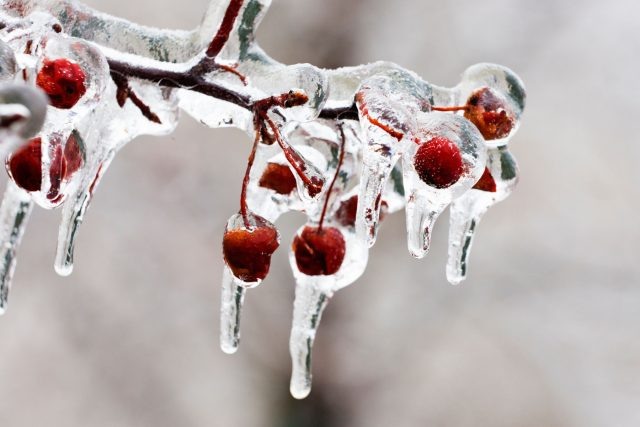 Наледь не следует путать с легкой изморозью — это подлое явление вызывает негативные последствия для растений. Она образуется в то время, когда температура в воздухе ниже нуля, а капли воды остаются в жидком состоянии. При попадании таких капель на холодные ветви и листья, они мгновенно замерзают, создавая все более толстый ледяной слой. Чем выше влажность и чем сильнее ветер, тем быстрее возрастает толщина наледи.