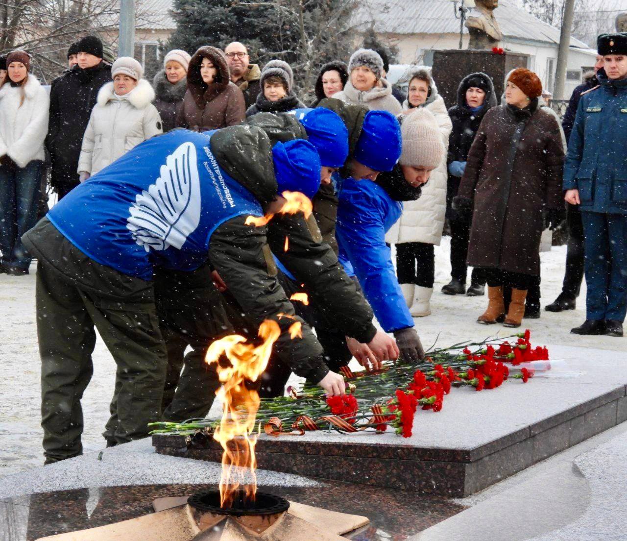 Ровеньская молодёжь возложила цветы к Памятнику погибшим воинам в день освобождения посёлка от немецко-фашистских захватчиков.