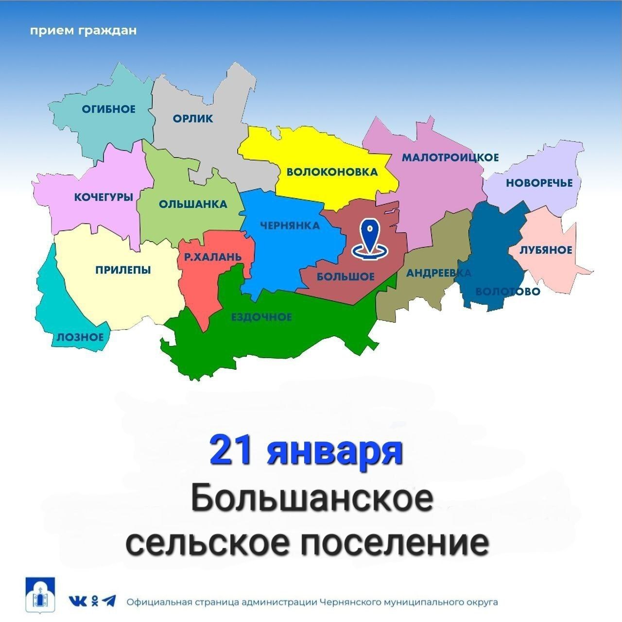 Приглашаем вас к участию в личном приёме, который состоится 21 января, в 14.00 по адресу с. Большое, ул. Красовка, д.12.Записаться на прием можно по телефону: +7(47232)5-57-80.