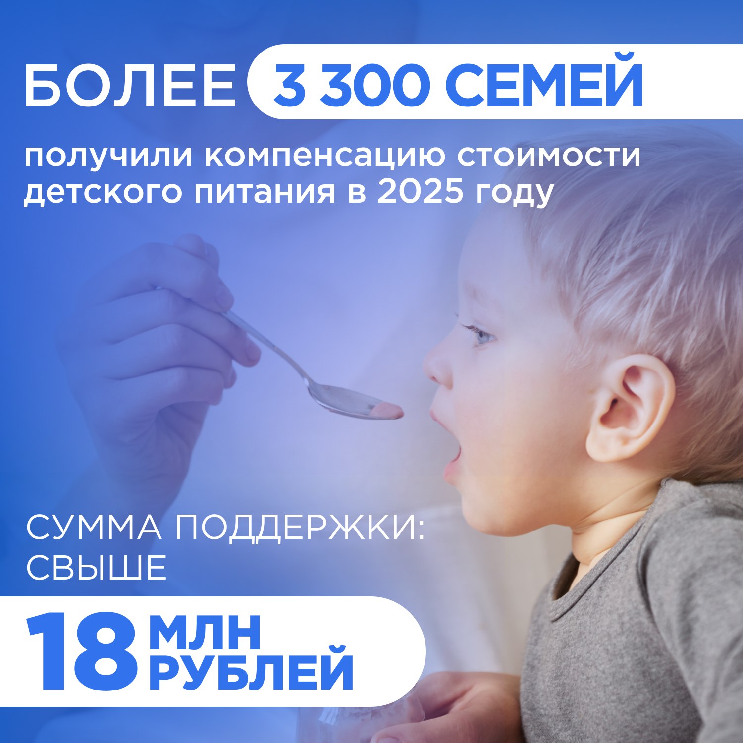 В 2025 году 3 301 семья воспользовалась компенсацией на покупку детского питания. Средства предоставляются для детей от 6 месяцев до 1,5 лет. Один из родителей получает выплату ежемесячно или суммарно до 8 400 рублей на период действия программы.