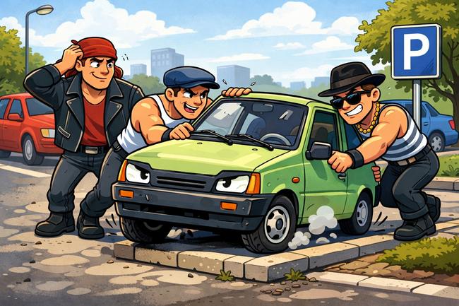 Вышли както три богатыря – 20, 22 и 23 лет – на дорогу, почесали затылки да и подумали: «Не хотим быть богатырями, хотим стать гангстерами». И решили угнать автомобиль. Выбор пал не на какуюто там иномарку, а на родимую отечественную «Оку». Видимо, рассчитывали на лёгкую добычу. Но не тутто было! Малолитражка не поддалась ни на какие уговоры, завестить отказалась, так что изрядно измученным парням удалось лишь оттащили упрямицу на соседнюю парковку.