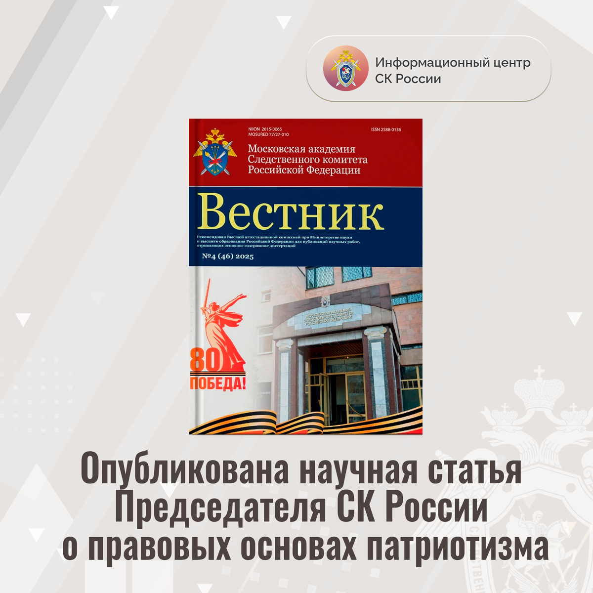 В свежем номере журнала «Вестник Московской академии Следственного комитета Российской Федерации» за 2025 год представлена статья Председателя Следственного комитета, признанного эксперта в области права, доктора юридических наук и профессора Александра Ивановича Бастрыкина.