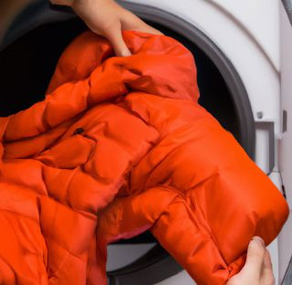 Не забудьте добавить теннисные мячики в барабан стиральной машины. Они помогут разбить комки и сохранит форму вашего пуховика.