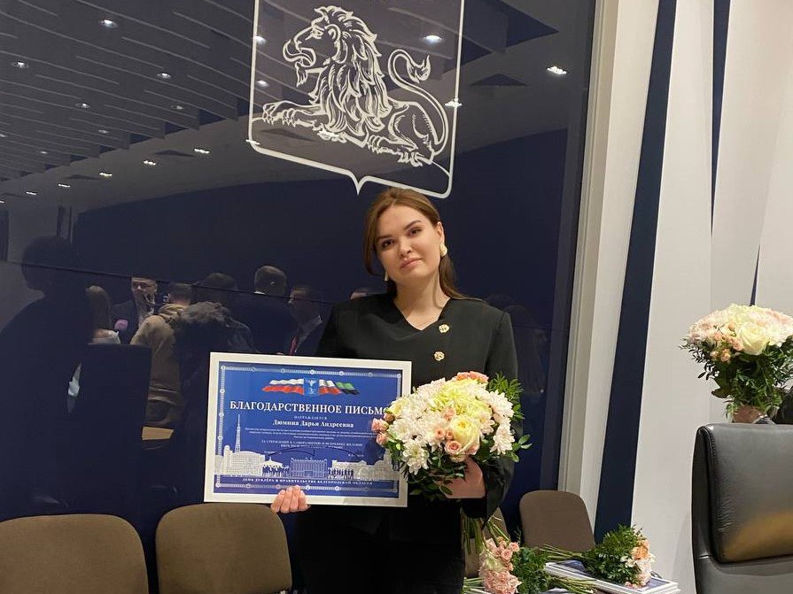 Рад сообщить, что в этом году в число дублёров, исполняющих обязанности заместителей и министров по направлениям, вошла наша землячка — Дарья Дюмина. Она исполняла обязанности первого заместителя министра имущественных и земельных отношений области!