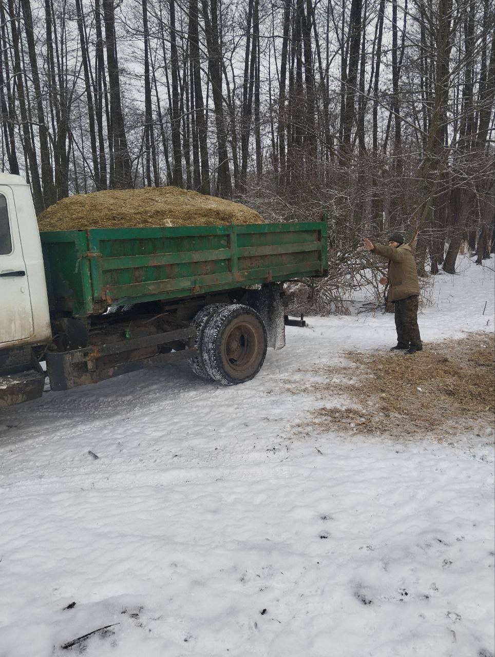 Сотрудники МБУ Охотник организовали подкормку на территории Охотничьего производственного участка "Яковлевское" силосом.