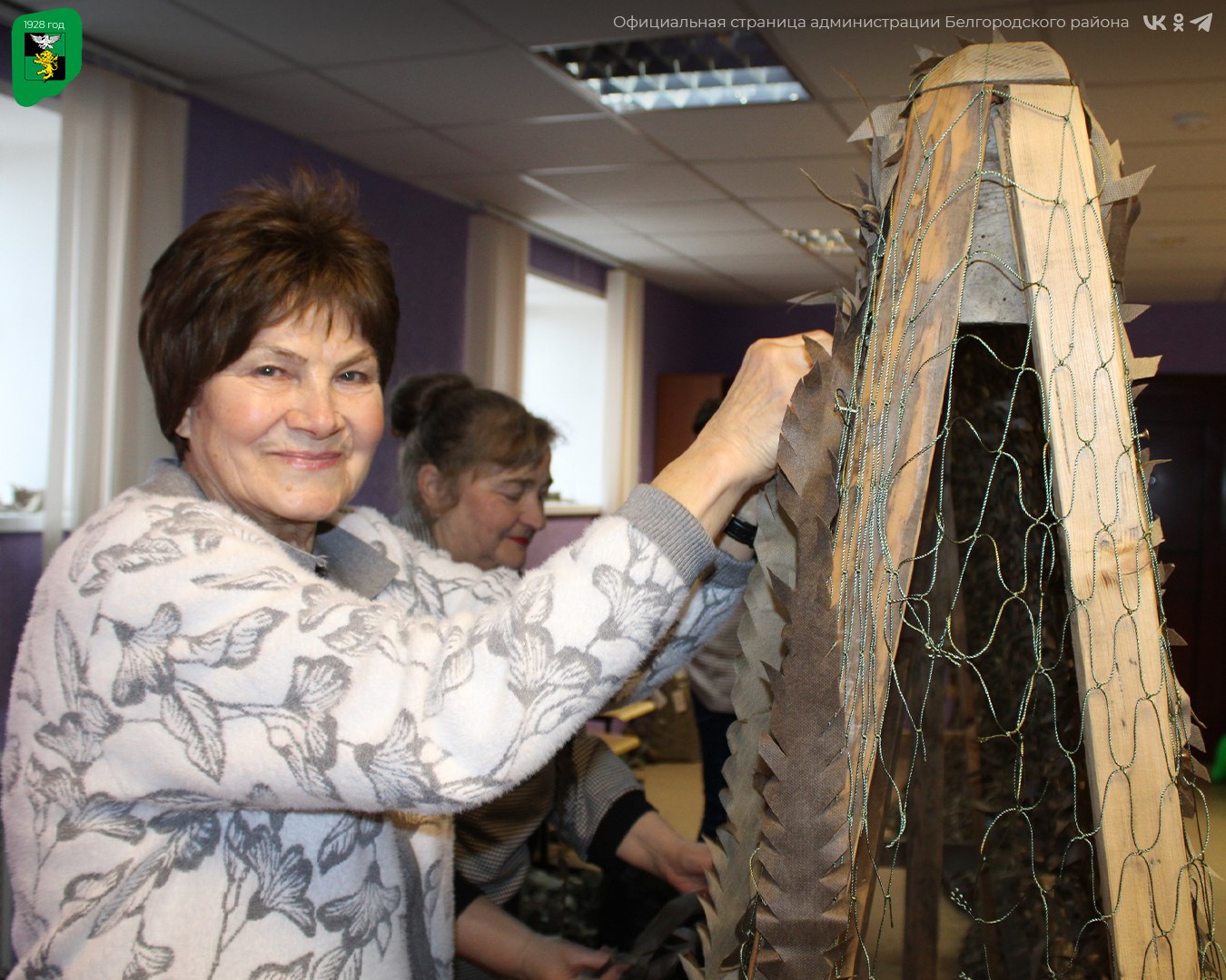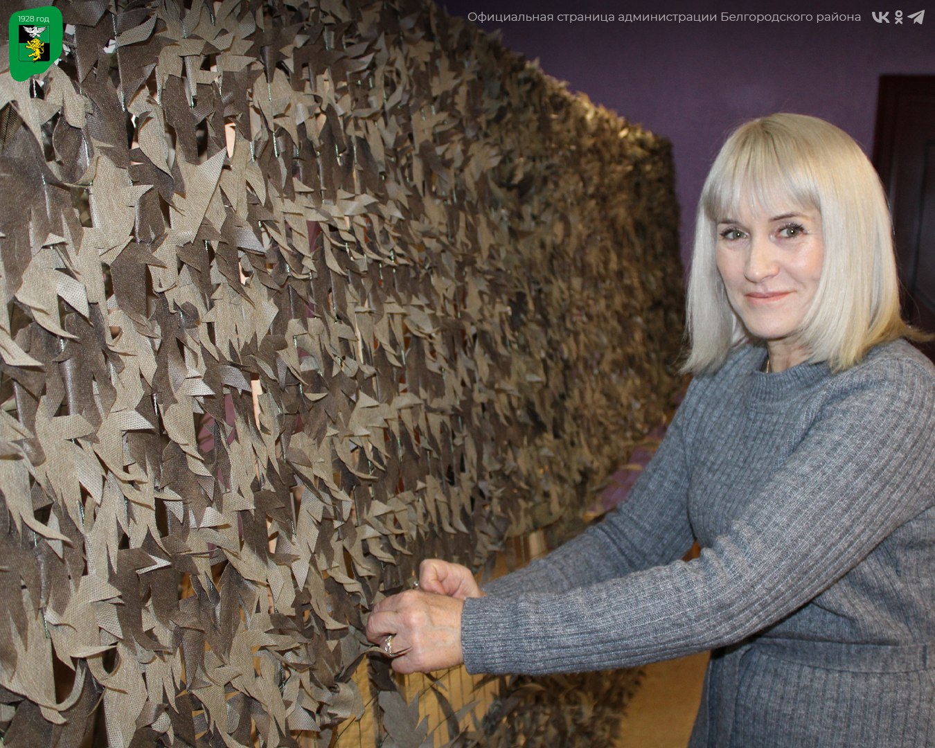Маскировочные сети изготавливаются на постоянной основе — они востребованы в большом количестве из-за ограниченного срока службы. Работа в мастерских начинается с утра и продолжается в течение дня: одних волонтёров сменяют другие, в том числе активные общественники и участники творческих коллективов.