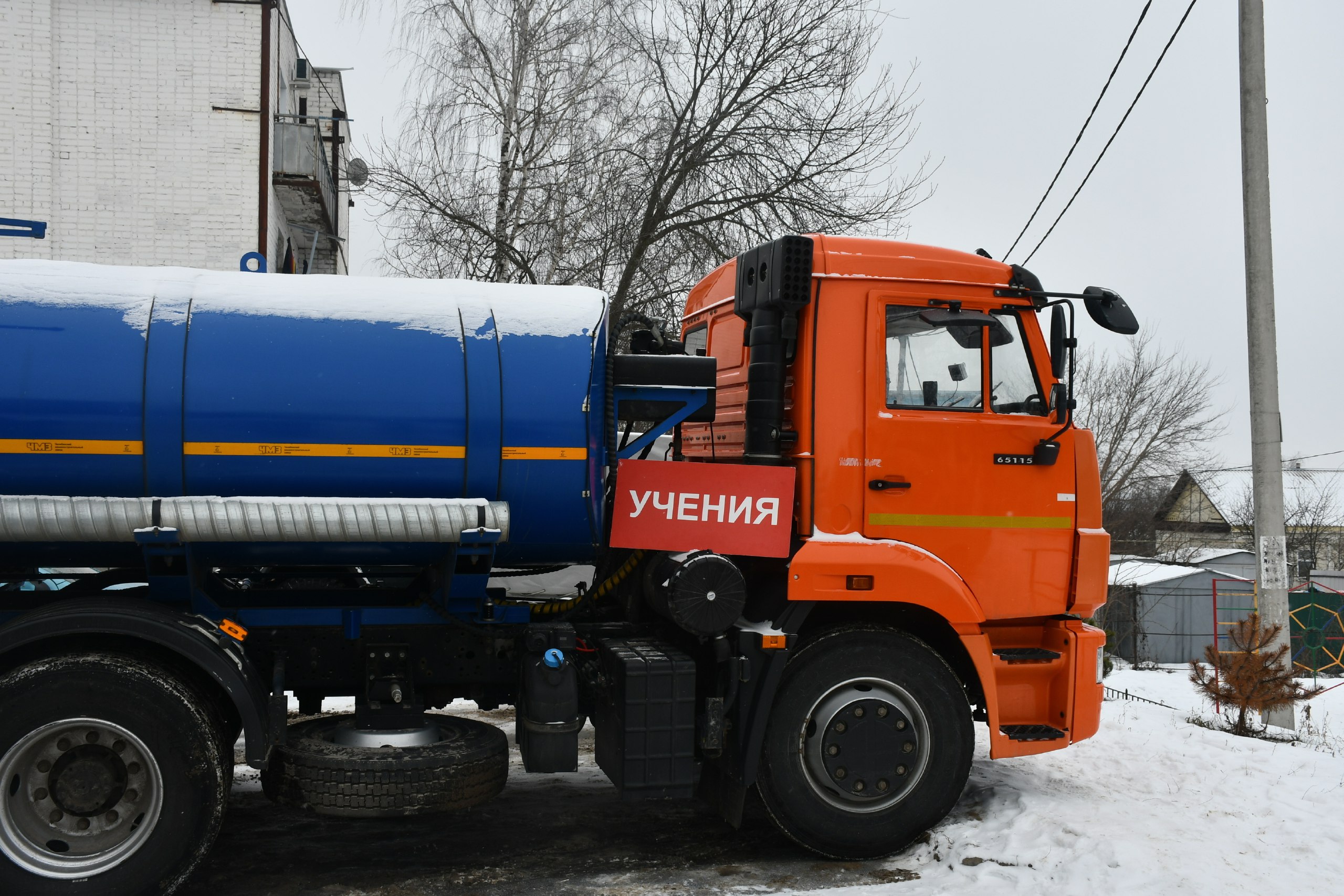 На этот раз отрабатывались действия по подвозу воды в случае отключения системы холодного водоснабжения.