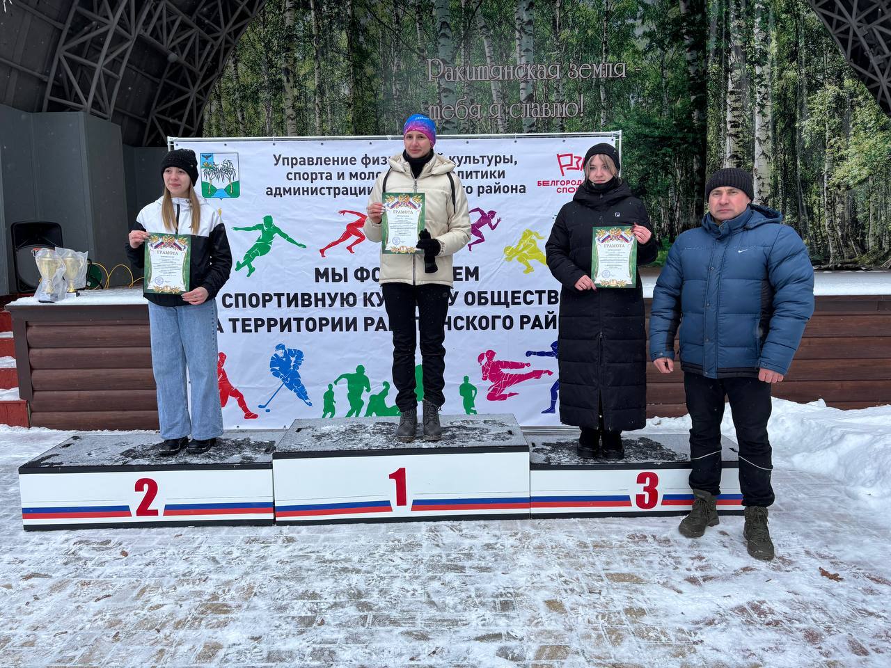 По итогам забегов победила команда территориального отдела «Посёлок Ракитное», второе место у Ракитянского агротехнологического техникума, на третьем - команда управления образования. Среди сельских территориальных отделов первое место завоевали дмитриевцы, второе - у команды из Бобравы, третье – у команды Центрального.