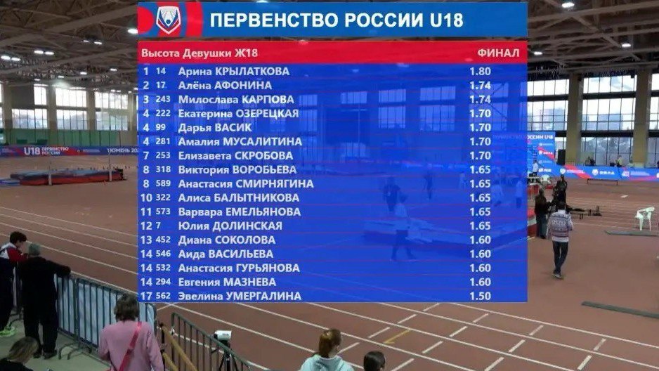Воспитанница спортивной школы № 1 Арина Крылаткова стала победителем первенства России по лёгкой атлетике в прыжках в высоту с результатом 180 см, одержав уверенную победу среди 17 участниц.