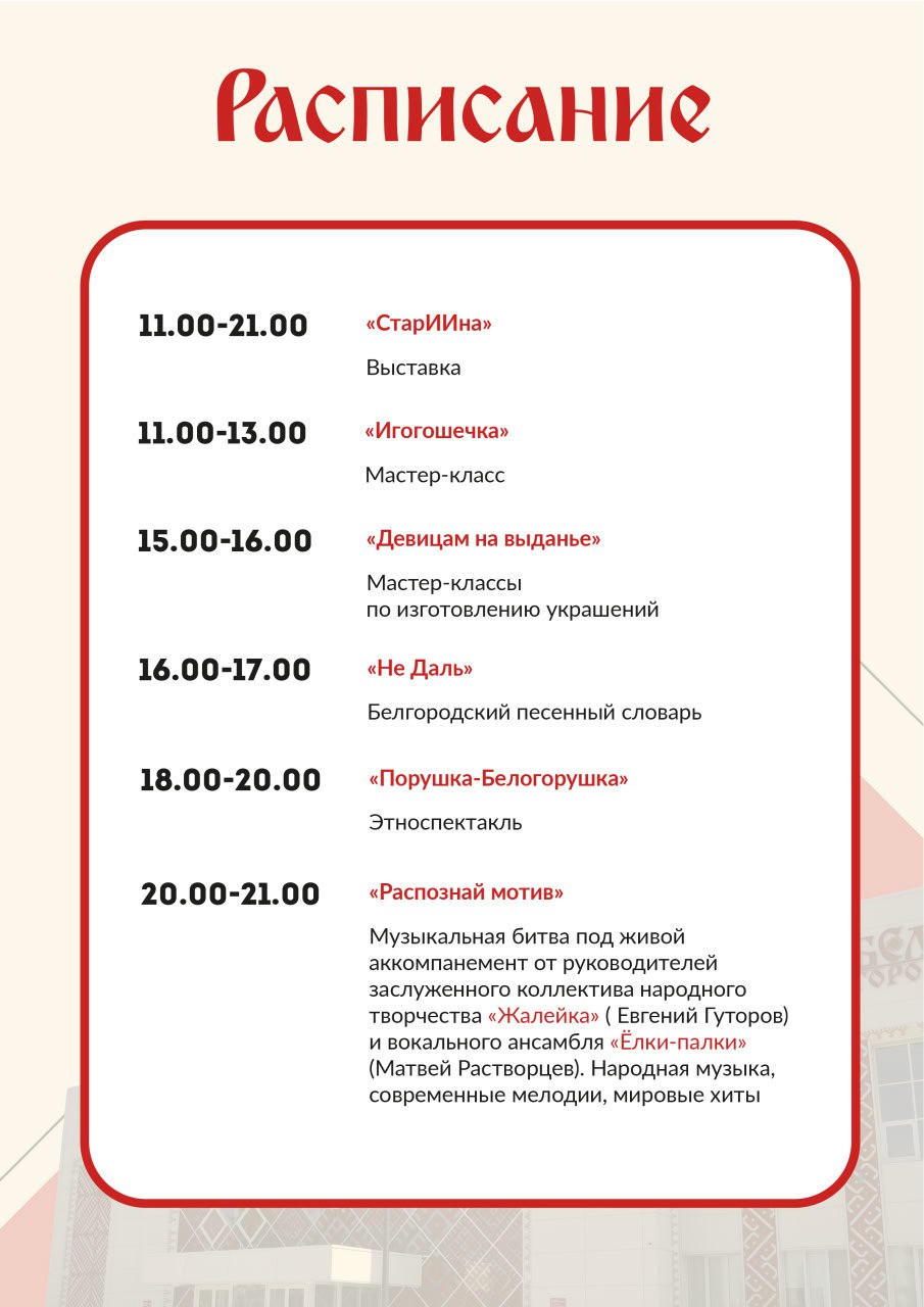 Уникальная возможность прикоснуться к живой истории Белгородского края, расширить кругозор и почувствовать магию народного творчества.