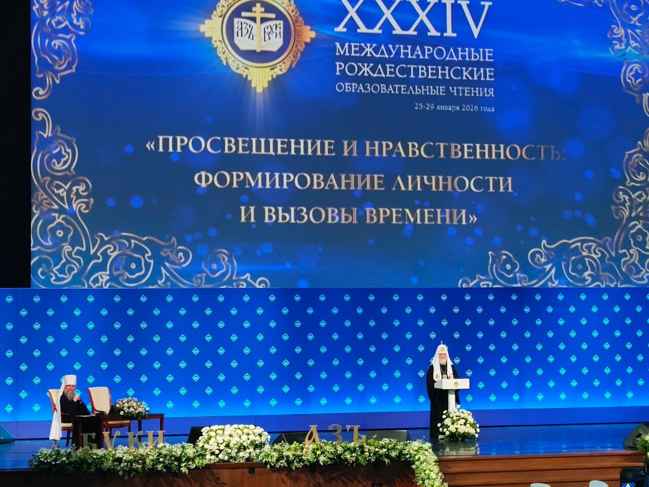 27 января в Государственном Кремлёвском дворце в Москве состоялось торжественное пленарное заседание, открывшее Международные Рождественские образовательные чтения. Тема форума в этом году — «Просвещение и нравственность: формирование личности и вызовы времени». В зале собралось более 5 тысяч человек. Возглавил заседание Святейший Патриарх Московский и всея Руси Кирилл.