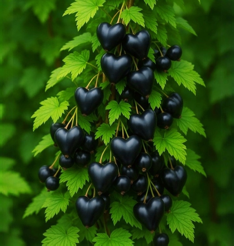 Этот сорт уникален внешне: ягоды крупные, с характерной формой, и кусты смотрятся эффектно в период цветения. Вкус ягод сочетает кислинку и лёгкую сладость, а листья указывают на генетическую принадлежность к золотистой смородине, а не к черной. В реальности «Пиковая дама» близка к естественной разновидности, а не к фотошопной иллюстрации.