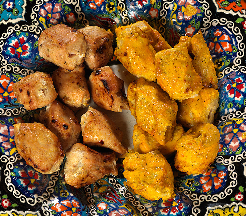 Для кебабов подойдут курица или свинина — выбирайте голодные кости и срезы без лишней грубости, чтобы маринад лучше проникал. Вырезка или филе дарят нежность, а ножом снятая шкура облегчает впитывание вкусов. Не забывайте сохранять кости и шкуру для будущего бульона.