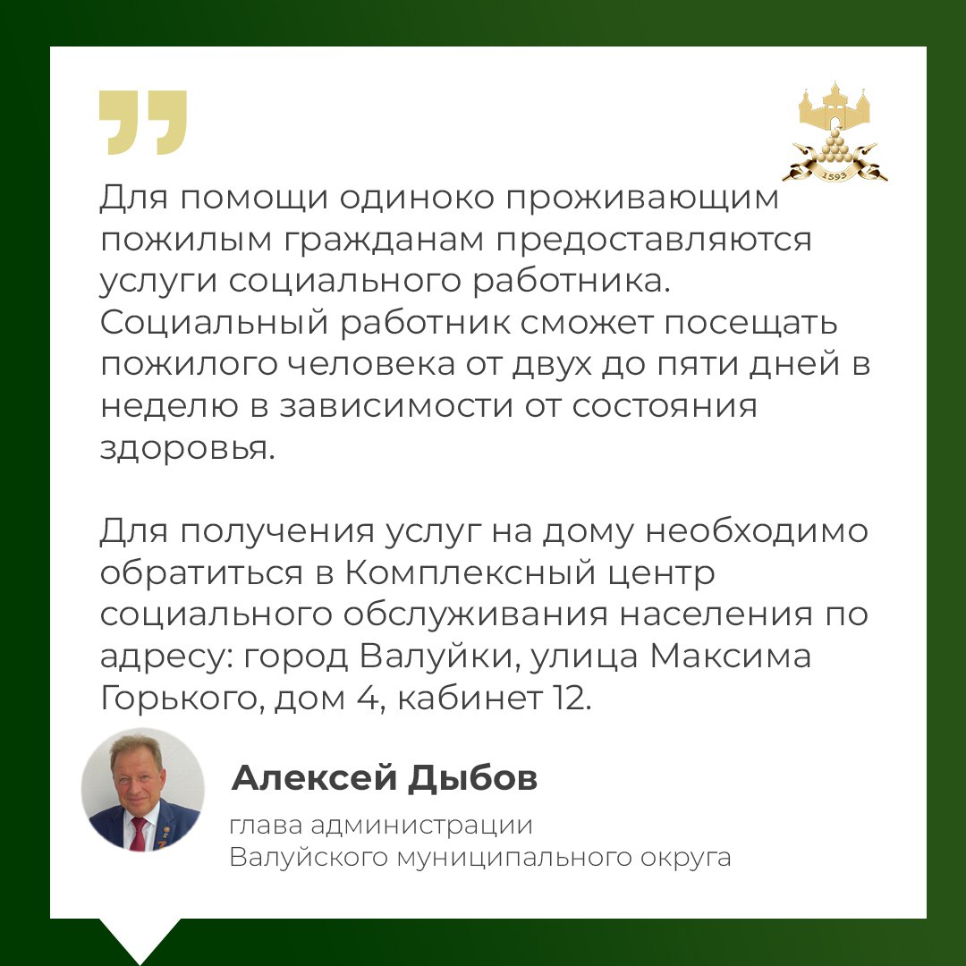 Глава администрации Валуйского муниципального округа Алексей Дыбов во время расширенного прямого эфира рассказал о возможности получения помощи для одиноко проживающих пожилых граждан.