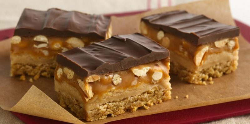 Шоколад плавится с сливками и выливается поверх карамельного слоя, после чего десерт снова отправляется в холод для полного застывания. Нарезка на аккуратные прямоугольники превращает лакомство в удобное к хранению угощение.