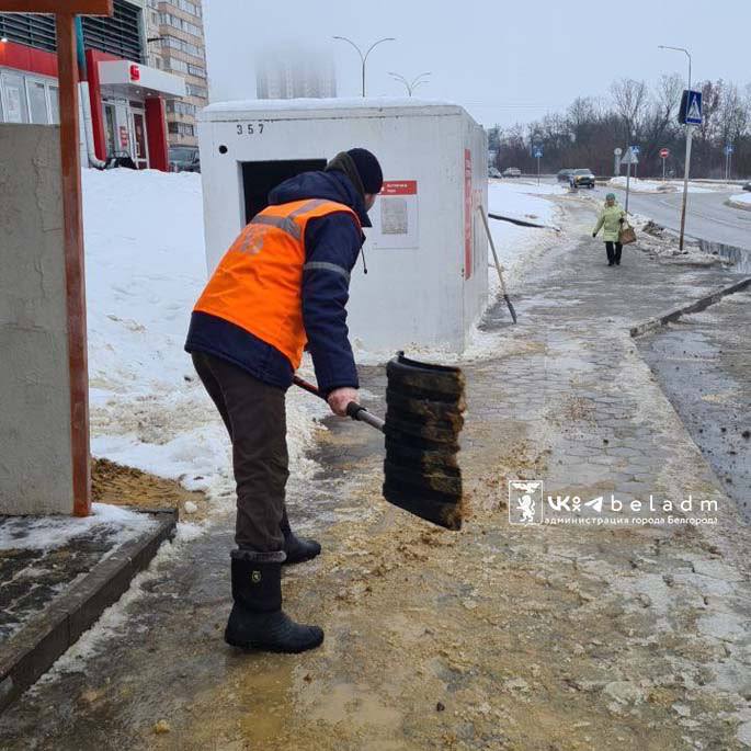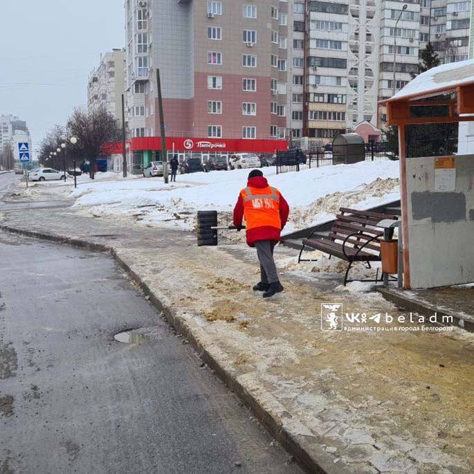 Коммунальные службы продолжают работу, чтобы минимизировать негативные последствия погоды. Особое внимание уделяется остановкам общественного транспорта, тротуарам и пешеходным связям с высоким трафиком. Сейчас на улицах города задействовано 205 человек и 64 единицы техники Белгорблагоустройства.