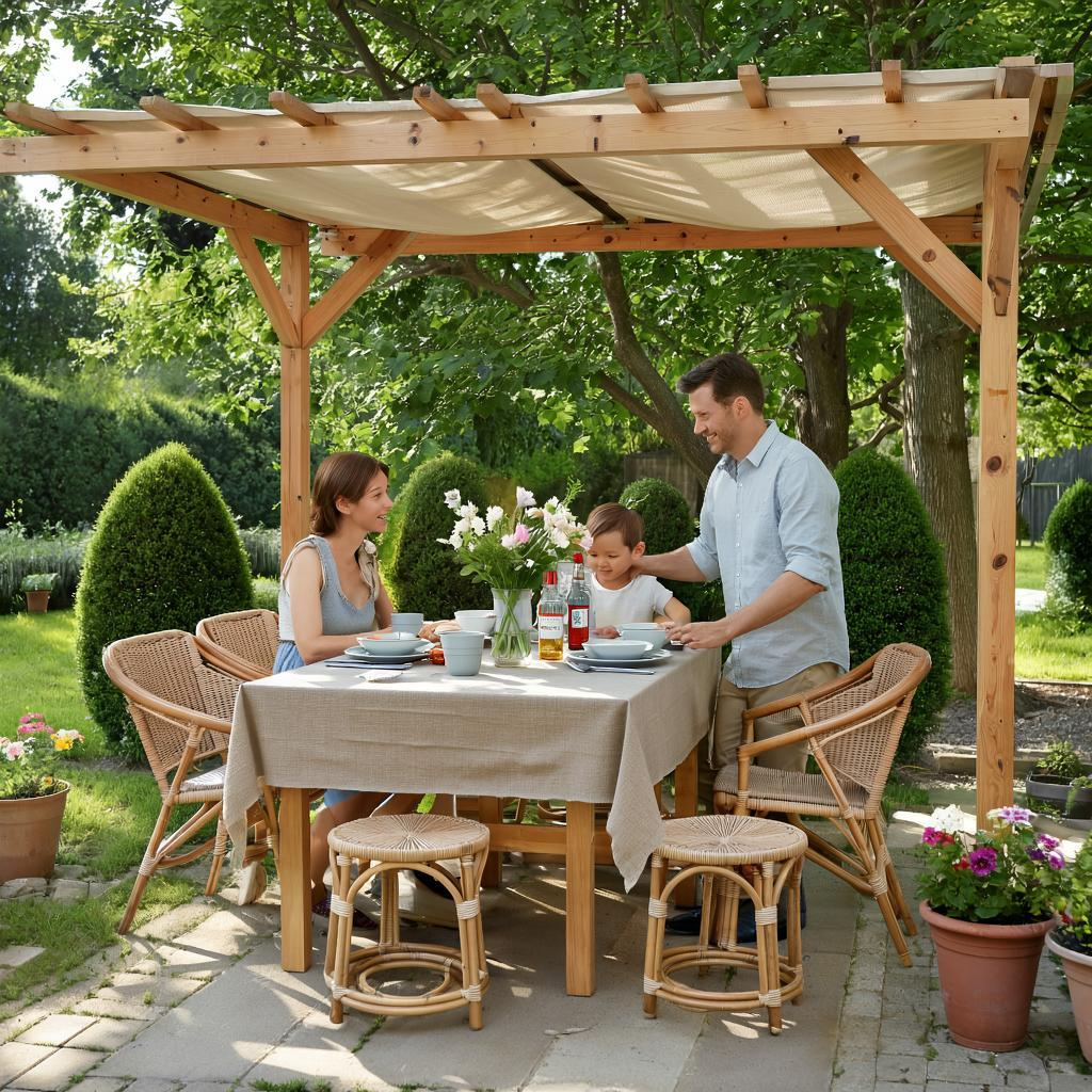 Созданная собственными руками обеденная зона под навесом – это не только функция, но и источник приятных воспоминаний для всей семьи. Каждое мгновение, проведённое в этом уютном уголке, становится важной частью вашего лета.