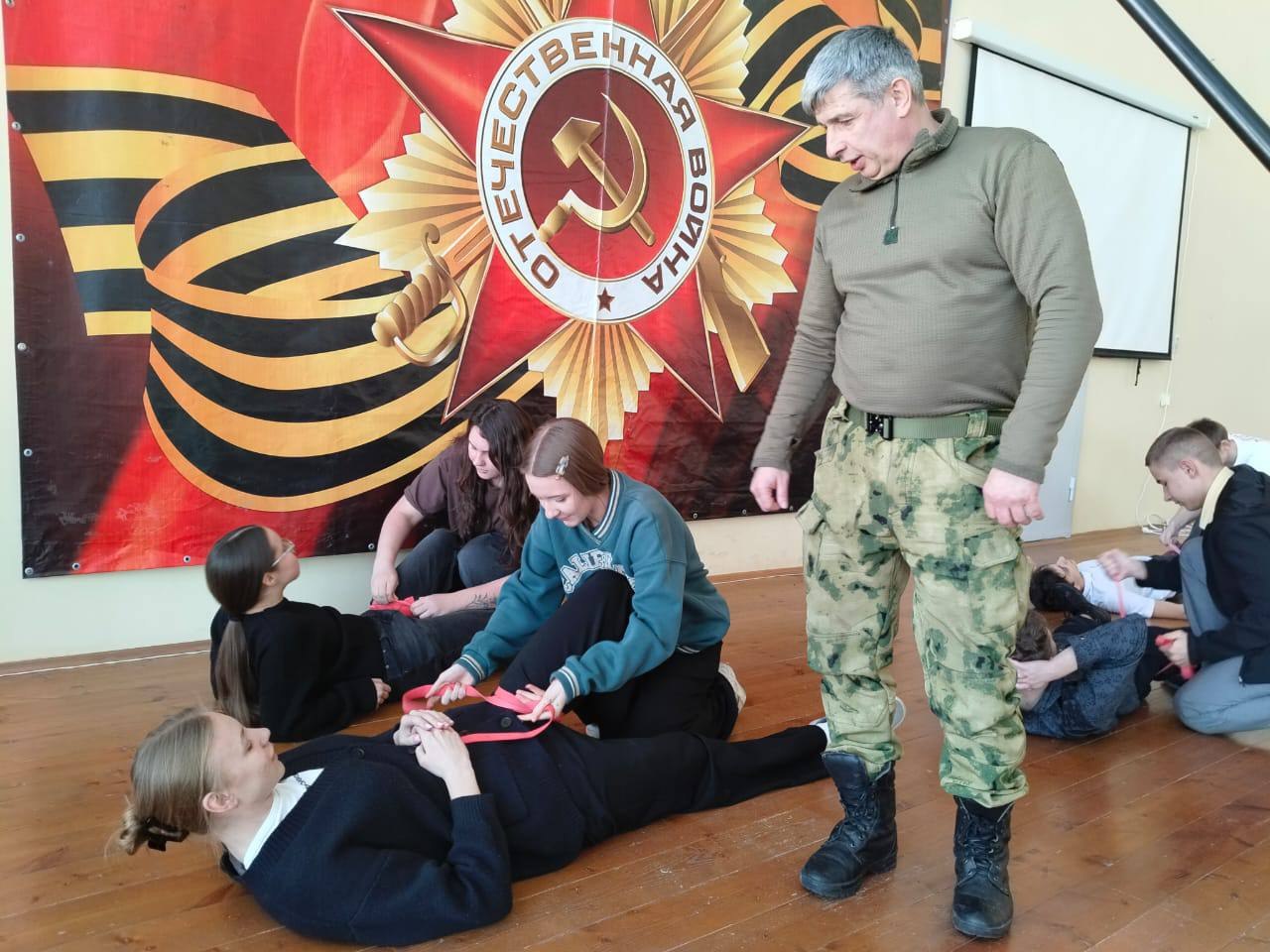 Для учеников и студентов образовательных учреждений округа проводят образовательные мероприятия, чтобы обучить их оказанию первой доврачебной помощи. На этой неделе инструктор центра «Воин» Владимир Владимирович Шевцов провёл занятие в одной из школ города.