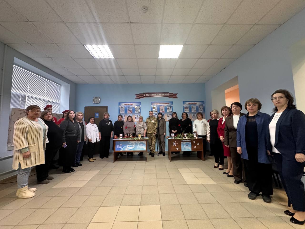 На церемонии присутствовали юнармейцы, учителя и мамы двоих героев – Алексея Ковалёва и Максима Схинаса. Им выразили благодарности за воспитание таких сыно-вей. Все вместе почтили память погибших минутой молчания и зажгли свечи.