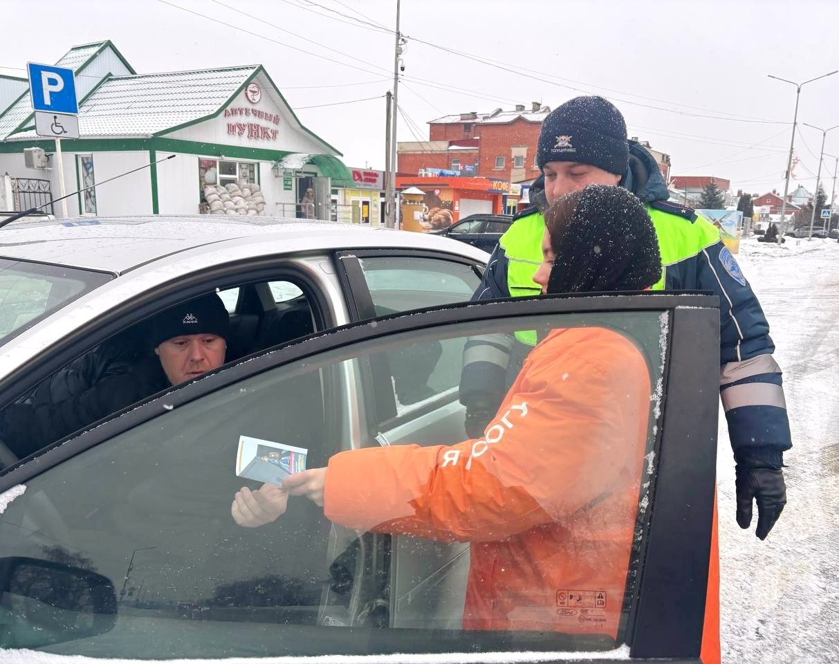Всем участникам дорожного движения были вручены тематические памятки, содержащие рекомендации по безопасному вождению в зимний период и напоминания об основных правилах ПДД.