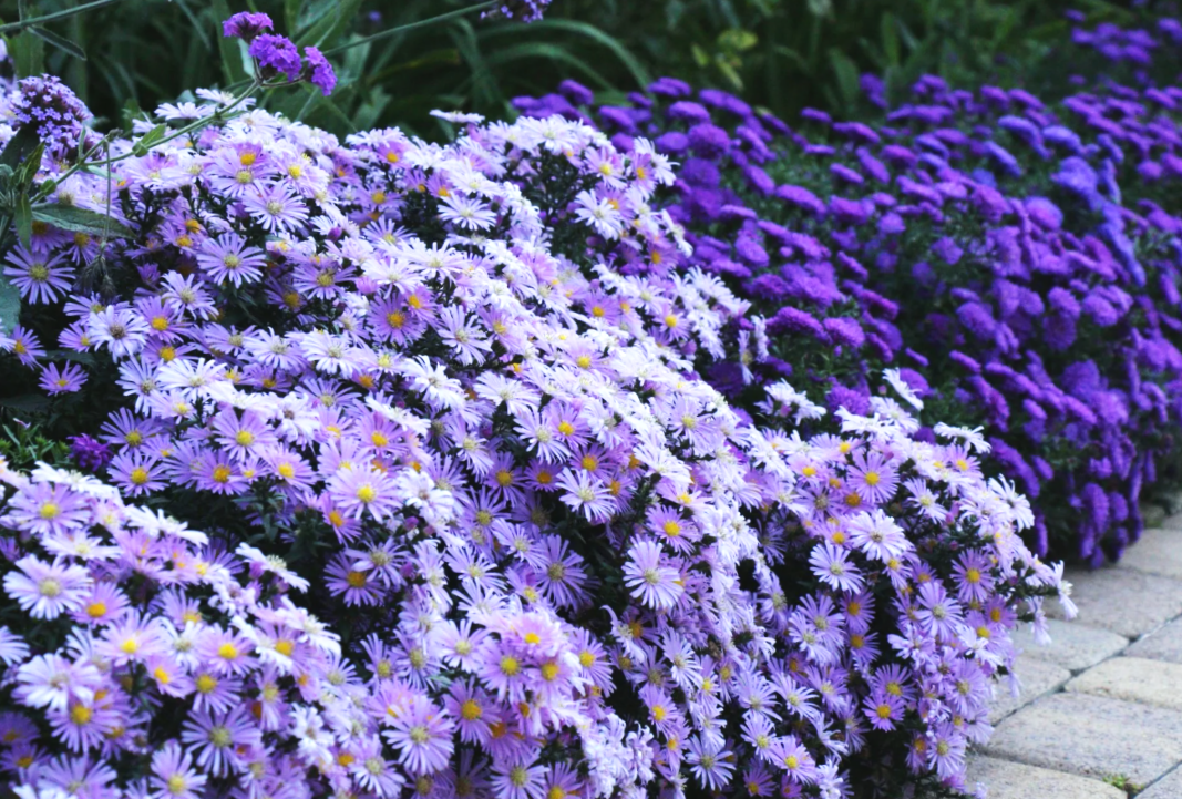 Начинают цвести поздно, когда другие цветы уже отцветают, астра новобельгийская радует глаз до самого ноября. С её помощью можно создавать живописные уголки, закрывая некрасивые стены заборов или хозпостроек.