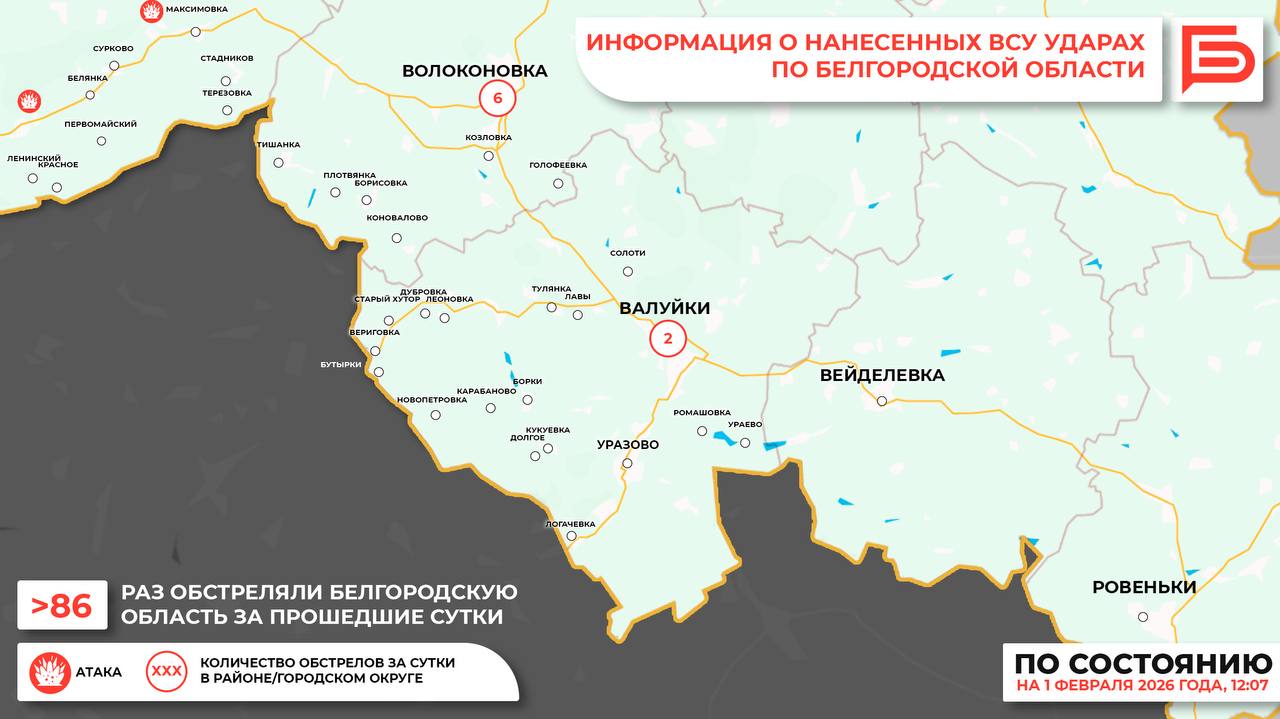 За прошедшие сутки ВСУ обстреляли Белгородскую область не менее 86 раз