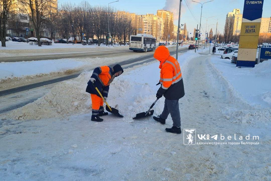 Специалисты «Белгорблагоустройства» ведут круглосуточную уборку и вывоз снега, а также обрабатывают дороги противогололёдными материалами.